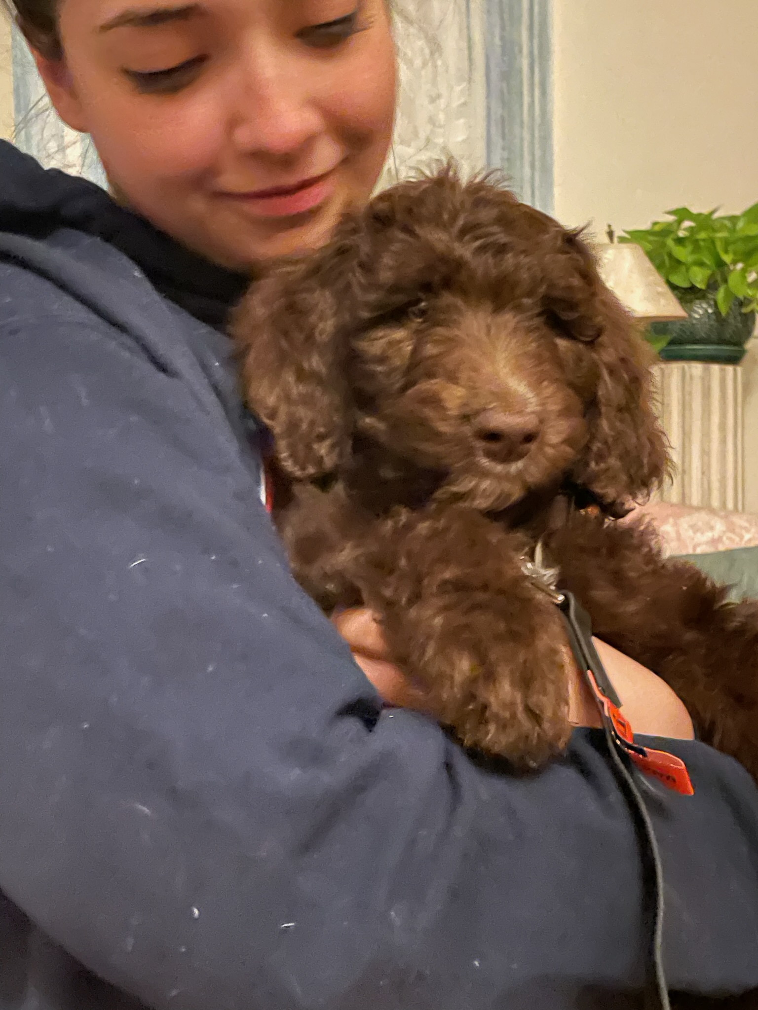 We sought to get a Daugherty Doodle mainly because the bitch has the sweetest personality! We had met Cinco several times, so when she was having a litter, we KNEW we had to have one!! Dutton is the sweetest and best boy! His personality is exactly what our family needed! He’s very affectionate, good with kids, and laid back. If my husband would allow it, we would get another!!!
